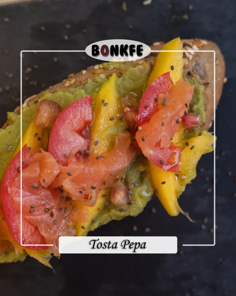 Hecho con tomate, aguacate, queso fresco, semillas de chia